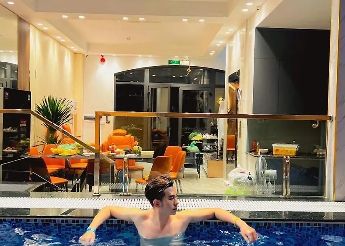 Chuoi Villa 7 Phong Ngu Danh Cho Gia Dinh - Canh Bien -Trung Tam Bai Chay features an equipped kitchen with a fridge and oven. Chuoi Villa 7 Phong Ngu Danh Cho Gia Dinh - Canh Bien -Trung Tam Bai Chay is located within a 38-minute drive of Cat Bi International airport. This property offers an indoor pool to ensure guests' maximum relaxation. At the apartment you will find a terrace which offers views of garden terrace.